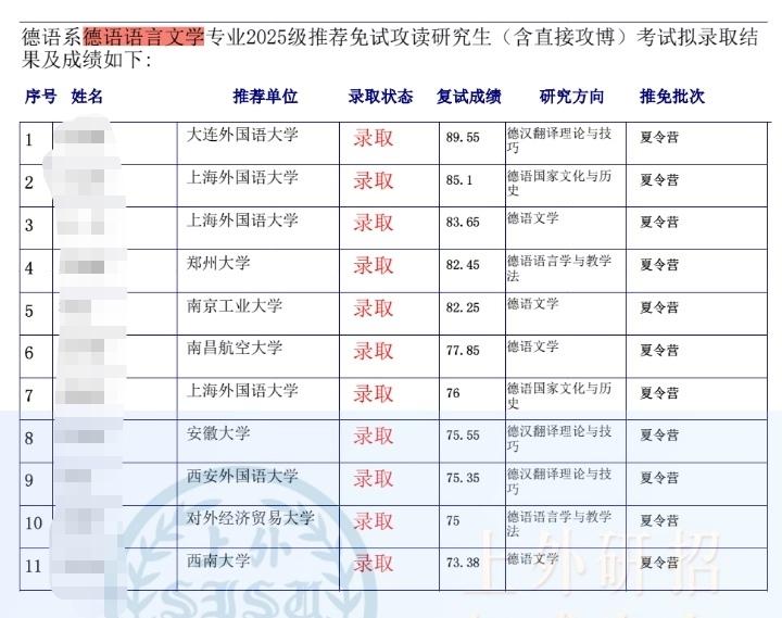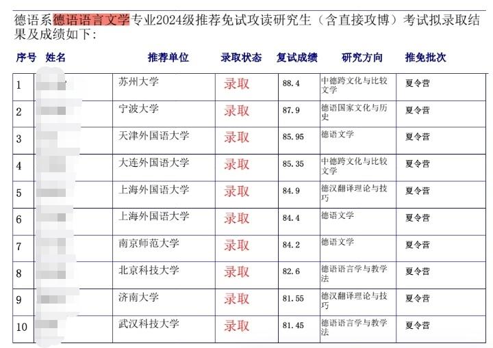 录取情况汇总:上外德语语言文学推免考试(保研)历年录取的同学本科来自哪里?发表时间:2026-01-30 17:50 录取情况汇总:上外德语语言文学推免考试(保研)历年录取的同学本科来自哪里?上外德语语言文学推免考试历年录取人数(以2015年-2026年的为例),以下数据都是基于上外官网数据整理: 拟招生(推免+统招):26年20人;25年20人;24年20人;23年20人;22年21人;21年21人;20年27人;19年28人;18年20;17年20人; 16年20人; 15年20人 推免录取人数:26年8人(都是9月份推免考试录取);25年11人(都是夏令营录取);24年11人(夏令营录取10个,9月推免考试录取1个);23年9人;22年8人;21年11人;20年7人;19年4人;18年7人; 17年8人; 16年7人;15年8人; 上外德语语言文学推免考试历年录取生本科院校(以2022年-2026年的为例),以下数据都是基于上外官网数据整理,,以下数据都是基于上外官网数据整理 ![]() ![]() ![]() ![]() ![]() ![]() 上外德语语言文学推免考试报名和考试时间、报考流程 🔸1、预报名时间 上外各个专业的推免考试预报名,近些年来都是于每年的9月1日至15日期间进行的(例如2026届的预报名时间是在2025年9月2日10:00至9月13日23:59),预报名的通知上外一般也会提前医联体发布在上外研究生院的官方网站。 2、按要求提交申请材料、等待复试资格 大家可以根据通知中的要求,认真准备并提交各项申请材料,提交申请材料后,就耐心等待复试资格的公示(如2026届的是9月15号考生就可以在上外研招报名系统中查询是否准予复试了)。 🔸3、在上外研招报名系统中接收复试通知,并下载准考证,准备好学生证、身份证等 收到复试通知的,还需要在报名系统中接收复试通知并下载准考证。如2026届的是在2025年9月18日至9月21日期间进行的。 4、在国家推免服务系统(http://yz.chsi.com.cn)中填报上外的意向专业、研究方向 接收复试通知后,一定也要记得还须在国家推免服务系统(http://yz.chsi.com.cn)中填报上外的意向专业、研究方向。如2026届的是在2025年9月22日9:00进行填报的,而且填报的招生专业及研究方向须与在预报名时填写的一致,否则会被取消推免考试资格。 🔸5、推免考试时间 推免考试的具体时间近些年来都是安排在同年的9月下旬,例如2026届的上外各个专业是在2025年9月23日至9月25日期间考完的),考试由专业笔试与专业面试两部分构成,两部分成绩各占总成绩的50%。 ![]() 上图援引自上外研究生院官网,2026届推免考试的(2025年9月份考试)时间节点、注意事项供后面备考的宝子们参考哈。 上外德语语言文学推免考试的一些要点 整个考试一般也是总共考2天,**天上午政审(基本就是走个形式)、下午专业笔试;第二天专业面试。 1、专业笔试 笔试时间常是1个小时,或1.5小时。题型主要是写一篇400字或500字议论文(偏文学或哲理思辨方向),然后是几个问题,要求结合自己的写作内容来回答。 例如2023年推免/统考复试的面试真题考过关于丝绸之路和一带一路倡议,全盛时期的丝绸之路是什么样一路"倡议?"一带一路"倡议包含什么? 你能为"一带一路"倡议做些什么? 再如2019年题目: Was haben Sie veranlassen,die Sprache Deutsch zu lernen? Was kann man machen, wenn man Deutsch lernt? Welche Herausforderungen hat man, wenn man Deutsch lernt? Wie kann man die Herausforderungen überwinden? 2017年题目:Mensch und Sprache 2015年题目:Interpretation 另外,往年也考过翻译、阅读、词汇语法选择等基础题。 2、专业面试 时长20分钟左右,考场里一般是由4-5名考官。 下面,着重讲一讲其中的面试部分,这个环节每个考生20分钟左右。在正式面试之前,需要到候场室进行候场和前期的准备活动、检查证件等,这一套程序走完之后就可以等待正式面试了。 考场上一般是有5位上外德语老师,即考官。进场之后老师会询问学生的考号后四位,然后直接开始考试。面试中一般是没有专门的自我介绍环节的,也不允许透露姓名和本科学校等信息哦(除非是老师问到),所以上外的面试还是很公平公正的。 老师一般是准备几篇文章,要求你随机选择一篇,默读5-10分钟或者让朗读一遍,然后做Zusammenfassung和回答问题。文章篇幅长度通常在800词左右,有的年份短一些。主题比较宽泛,从新闻时事到中德跨文化交流等都可能考到。老师一般会先让学生朗读或者默读文章,然后围绕文章内容给出10个左右的考题,难度逐步上升。 老师也会根据你的回答进行提问,可能你提到的某个词语或者概念进行解释。整体来说基本上就是阅读理解的套路。 高译推免/复试辅导课程 🎯高译教育专注上外保研考研、考博辅导13年,师资为上外等核心高校硕博校友,平均教龄超5年,以高辅导通过率在业内享有优质口碑。教学体系完善,每年更新针对性资料,确保资料和辅导的翔实和针对性。 高译提供考研保研全维度辅导,针对笔试+面试重难点、训练答题思路、指导外语听说展开指导并实行多轮模拟面试。一对一线下、线上两种授课模式(支持回放),高效提升复试竞争力,帮大家稳稳掌握考试关键! 本文由上外考研高译教育分享,未经同意请勿抄袭。高译教育专注上外各个专业考研保研辅导,及上海其他院校考研保研,也可关注“高译考研”公众号,查看历史消息,有备考的一些干货,都是上外及上海其他院校考研相关的,各个专业。 |